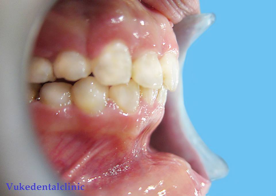 Protrusion of upper incisors, also called "Class II malocclusion", is the result of excessive growth of the upper jaw (maxilla), or the reduced growth of the lower jaw (mandible), or a combination of both.